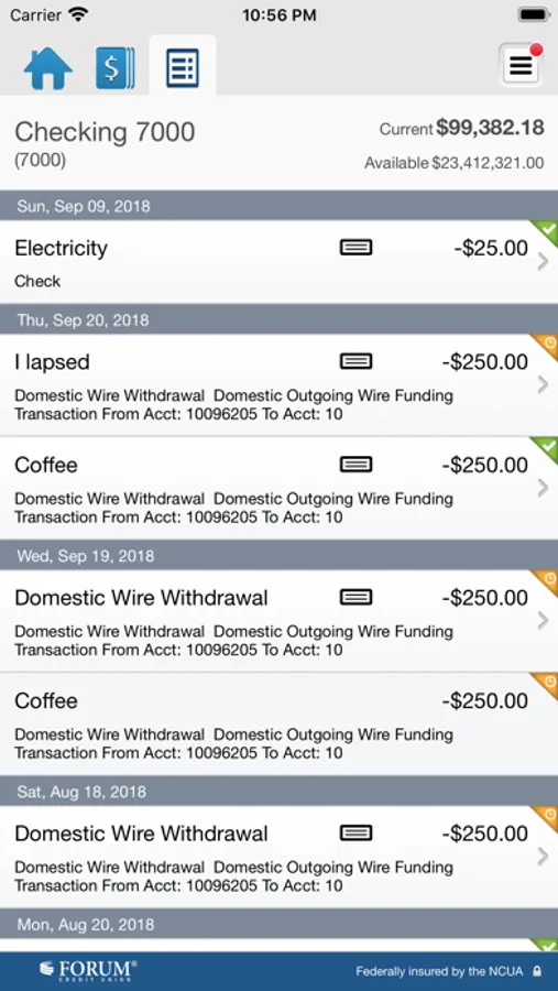 - Review account information: branch deposits, ACH transactions, wire transfers, debit card transactions, and ATM transactions