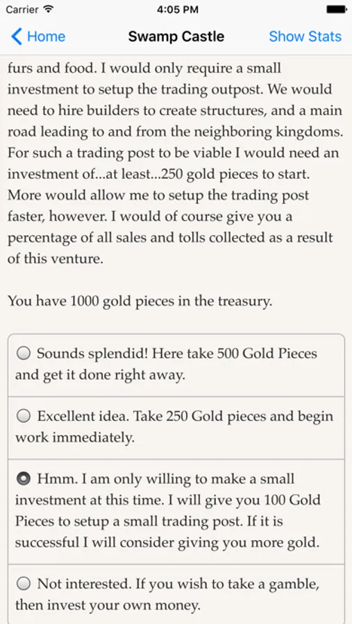 "Swamp Castle" is an interactive novel by Philip Kempton where your choices control the story. It's entirely text-based--102,000 words, without graphics or sound-effects--and fueled by the vast, unstoppable power of your imagination.