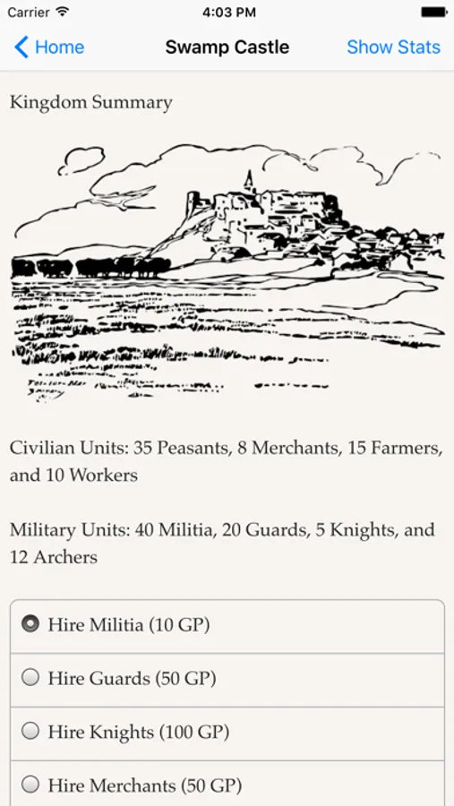 You are a newly appointed Lord in charge of a small castle. Manage your castle's finances, hire troops, resolve conflicts among the peasants, and bring order to the realm. Expand your power through war, diplomacy, or stealth. Whether you rise or fall is up to you in Swamp Castle.