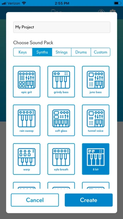 • Choose from over 50 different types of instruments, including keys, synths, strings, horns, and drum kits, plus other sound packs, like animals and sound effects.