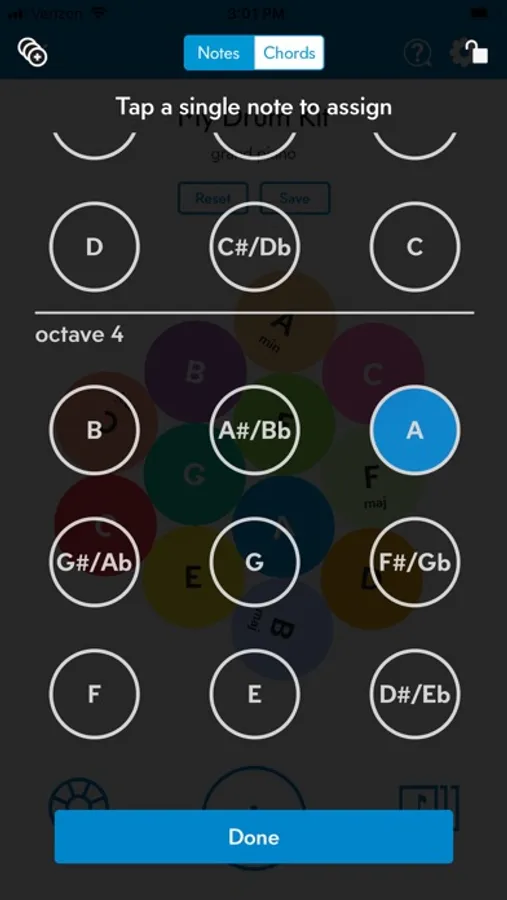• Combine multiple notes and samples to a single color to create custom chords and sounds.