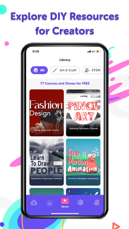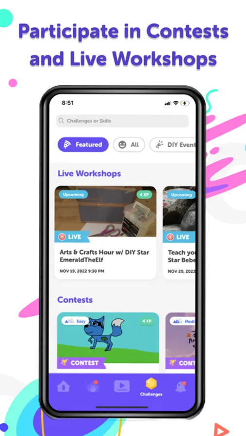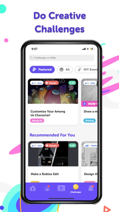 The DIY app offers kids a safe and moderated platform to chat, share their creations, collaborate over projects, and make friends over common interests! There are over 150 interests for kids to explore like art, gaming, coding, music, anime, drawing, science, fandoms, etc, and DIYers add new ones to the platform everyday by hosting challenges, live workshops, and contests of their own. In fact, nearly all the challenges, contests, and live workshops on DIY today are hosted by kids for other kids! For kids who want to explore new interests, we have a library of DIY videos and hands-on projects they can try to trck their progress!
