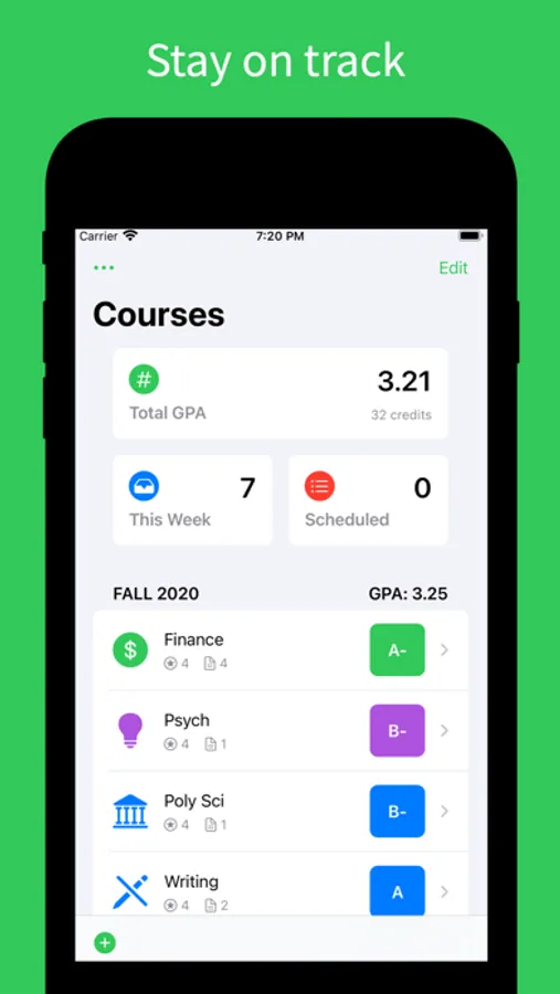 Track courses and watch as both your overall GPA and semester GPA is automatically calculated.
