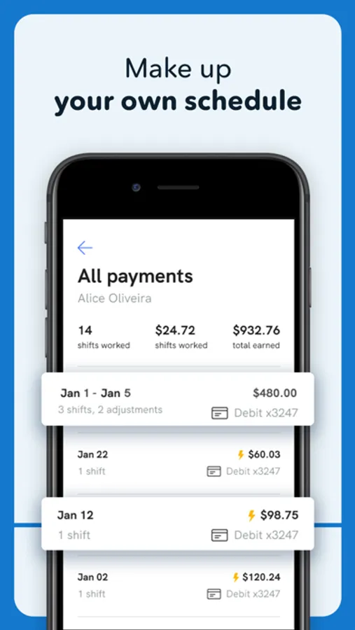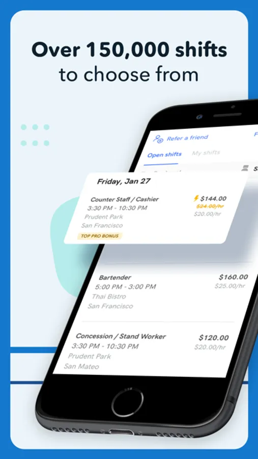 Find jobs that fit your schedule through Instawork’s job search tool. Local businesses post available jobs, shifts, or gig work; find a job that works for you and review pay details before accepting the shift. Instawork allows Pros to see exactly how much you’ll make with each shift. Join our Top Pro Program and earn rewards and benefits like daily pay or cash bonuses. Say goodbye to the traditional job search and become your own boss today with Instawork!
