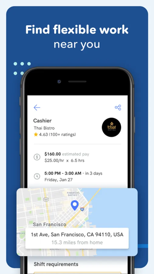 - Job finder: Find shifts, gig work, and side jobs hiring