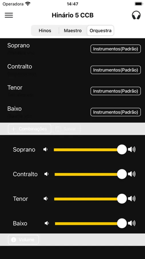 => Combine vozes musicais: Soprano, Contralto, Tenor, Baixo;