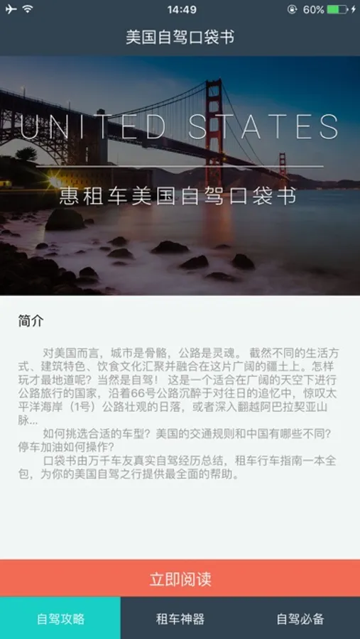 美国自驾攻略由专业海外租车自驾神器“惠租车”推出,由千万海外自驾车友真实自驾经历总结,自驾达人联合主编,租车行车路线指南一本全包,涵盖驾驶规则、常见交通标识、当地租车公司、境外安全等,为您的美国自驾之行提供最全面的帮助。