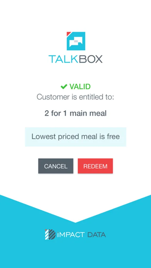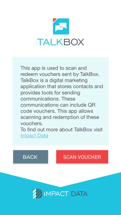 TalkBox is a digital marketing app that can can generate vouchers as QR codes. This app allows scanning and redemption of these vouchers.