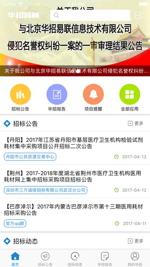 2010年公司创办华招器械网,依托公司在医疗行业强大的资源,为一次性医疗器械、医用耗材、检验试剂生产企业提供招投标相关信息咨询及数据分析服务。 主要服务方式为网站系统及客服跟踪服务。