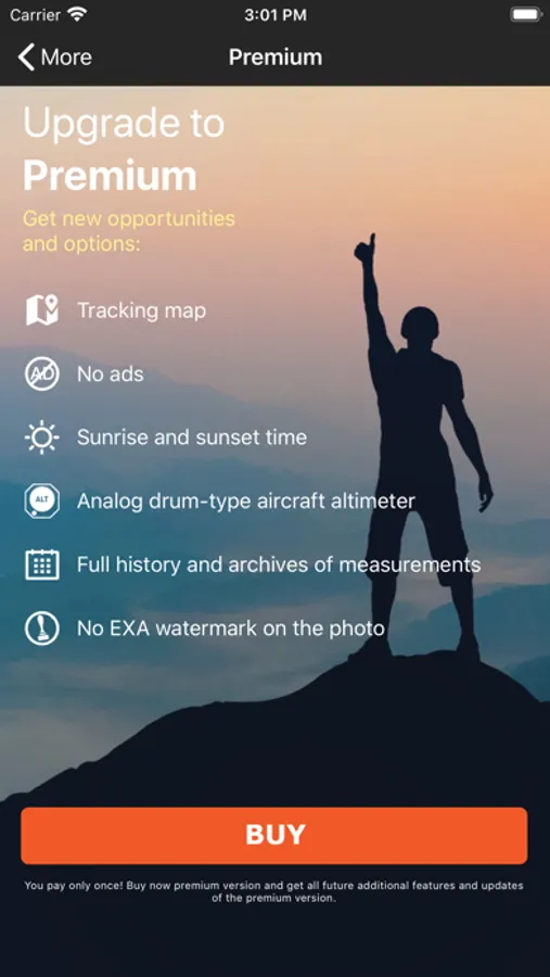 - sharing with others your achievements (photo taking function with the current altitude above sea level)