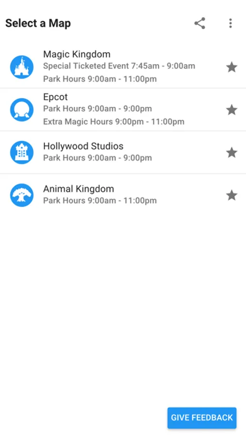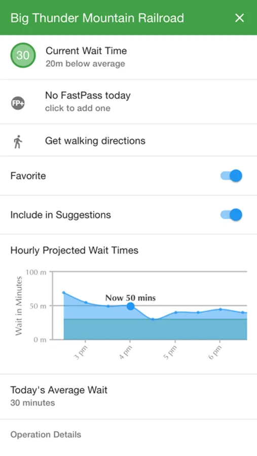 1. Simple Intuitive Design - A simple design reduces the complexities of each park down to three color-coded states, clearly spelling out your current attraction and entertainment options in one view.