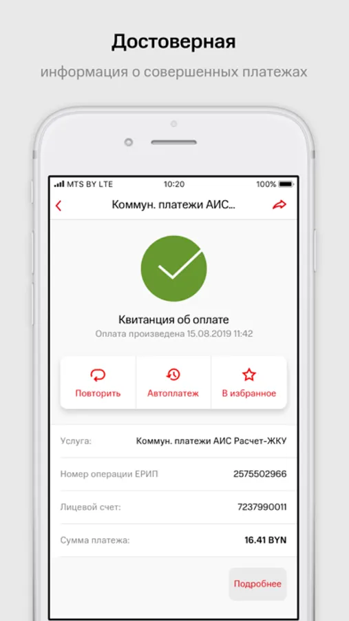 • просматривать историю платежей с подробными квитанциями об оплате;
