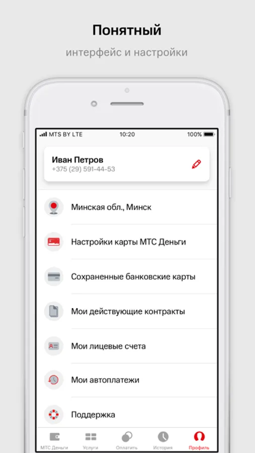 • управлять параметрами банковской платежной карточки прямо из приложения «МТС Деньги»;