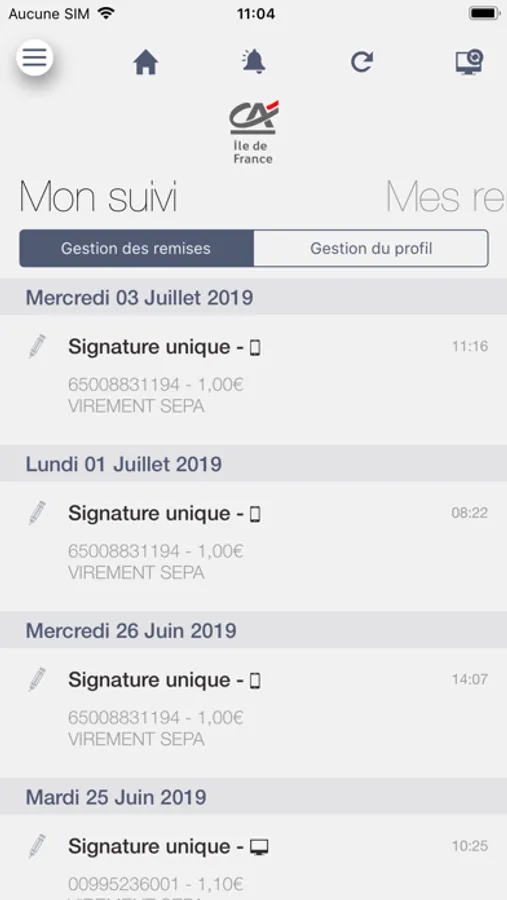 • consulter les remises EDI signées sur le site Internet Ediweb à l’aide de l’application.