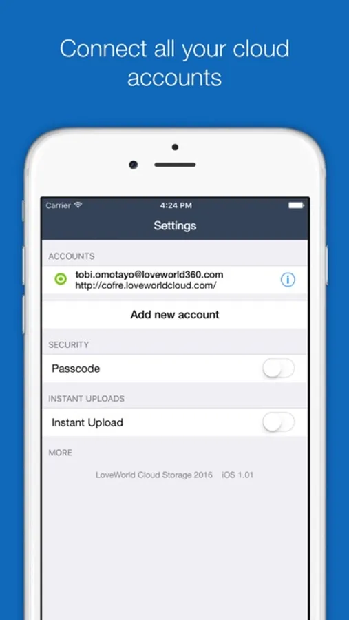Manage all your files, photos documents and presentations easily wherever you go. Share files of all kind with anyone. Connect all your cloud account and easily manage them in one place. Your files are more secured than ever on LoveWorld Cloud Storage.