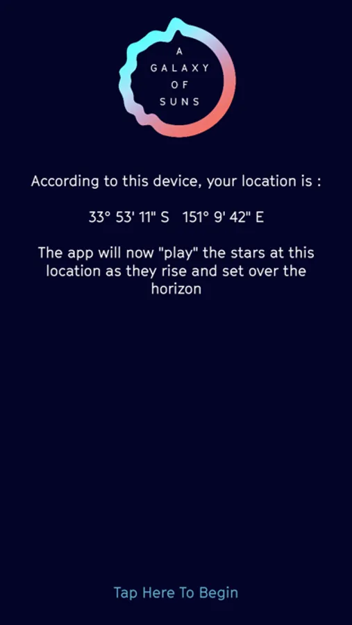A Galaxy of Suns ‘plays’ the stars as they rise and set over 360 degrees of the horizon – for any location on Earth. Operating on a galactic scale, this project is a collaboration across contemporary art, music, astronomy, design and technology. A Galaxy of Suns works with the native potentials of smart device technology to create a unique experience of the cosmos accessible to wherever you find yourself in the world.