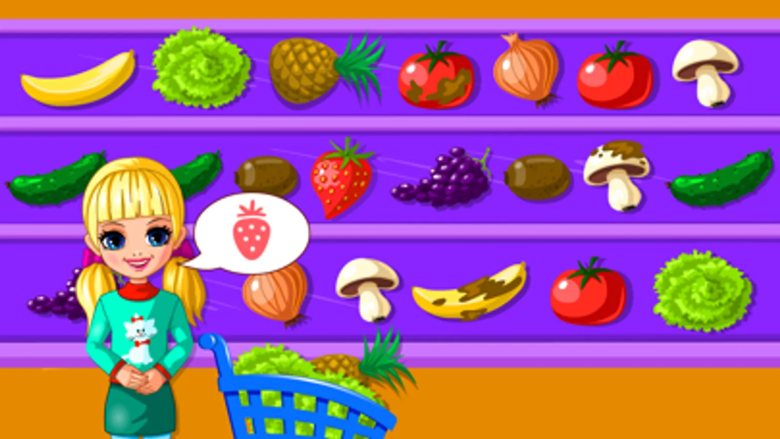 • Fruits and vegetables: Pick up fresh fruits and vegetables and avoid the rotten ones. Collect bananas, strawberries, tomatoes, carrots and other healthy foods.