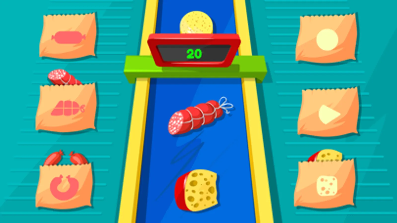 • Cheese and salami: Sort different types of salami and cheese from the conveyor belt. Drag every item to its box and be the fastest sorter in your shop.