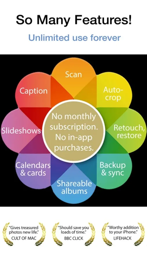 Get high-quality photo scans and MUCH more with this magical app. First launched in 2013 as Pic Scanner, this was world's first multiple-photo scanner app. Over the years, we've added tons of refinements and features. Unlimited use of ALL features for a one-time price. No subscriptions or in-app purchases.