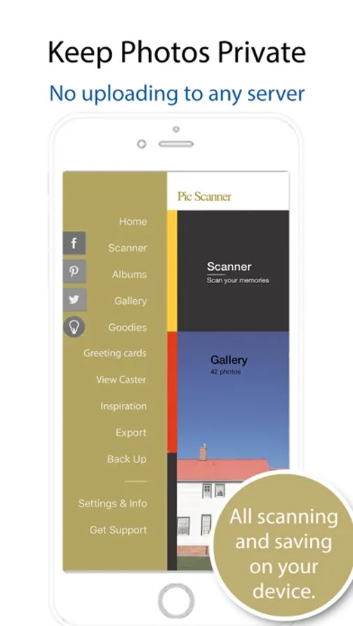 * Photos stay on your iPhone/iPad, NOT our server