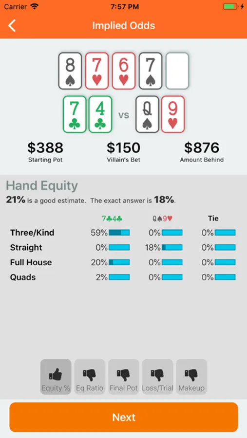 Improve your poker skills and build your intuition through repetition. Poker Drills create endless scenarios for you so you can drill anywhere!