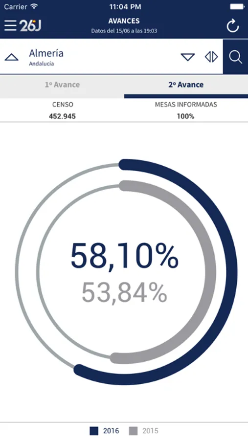 Esta aplicación permite a los ciudadanos consultar los resultados del escrutinio provisional de las Elecciones Generales que se celebran el 26 de Junio de 2016.