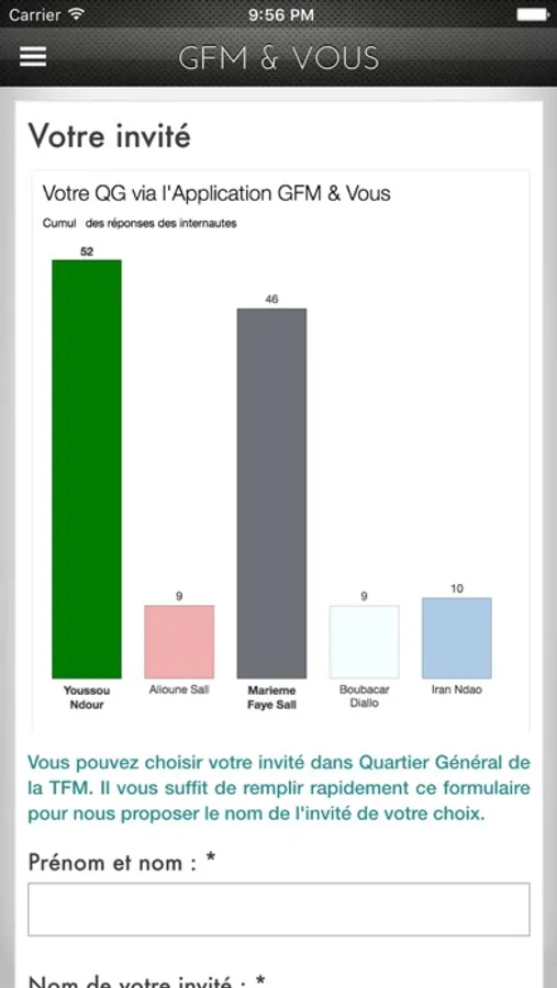 L'application GFM & Vous regroupe tous les services du Groupe Futurs Médias et donne la possibilité aux utilisateurs d'interagir directement avec nos présentateurs, journalistes, animateurs et artistes. C'est un tout en un qui vous ouvre les portes de la Galaxie Futurs Médias.