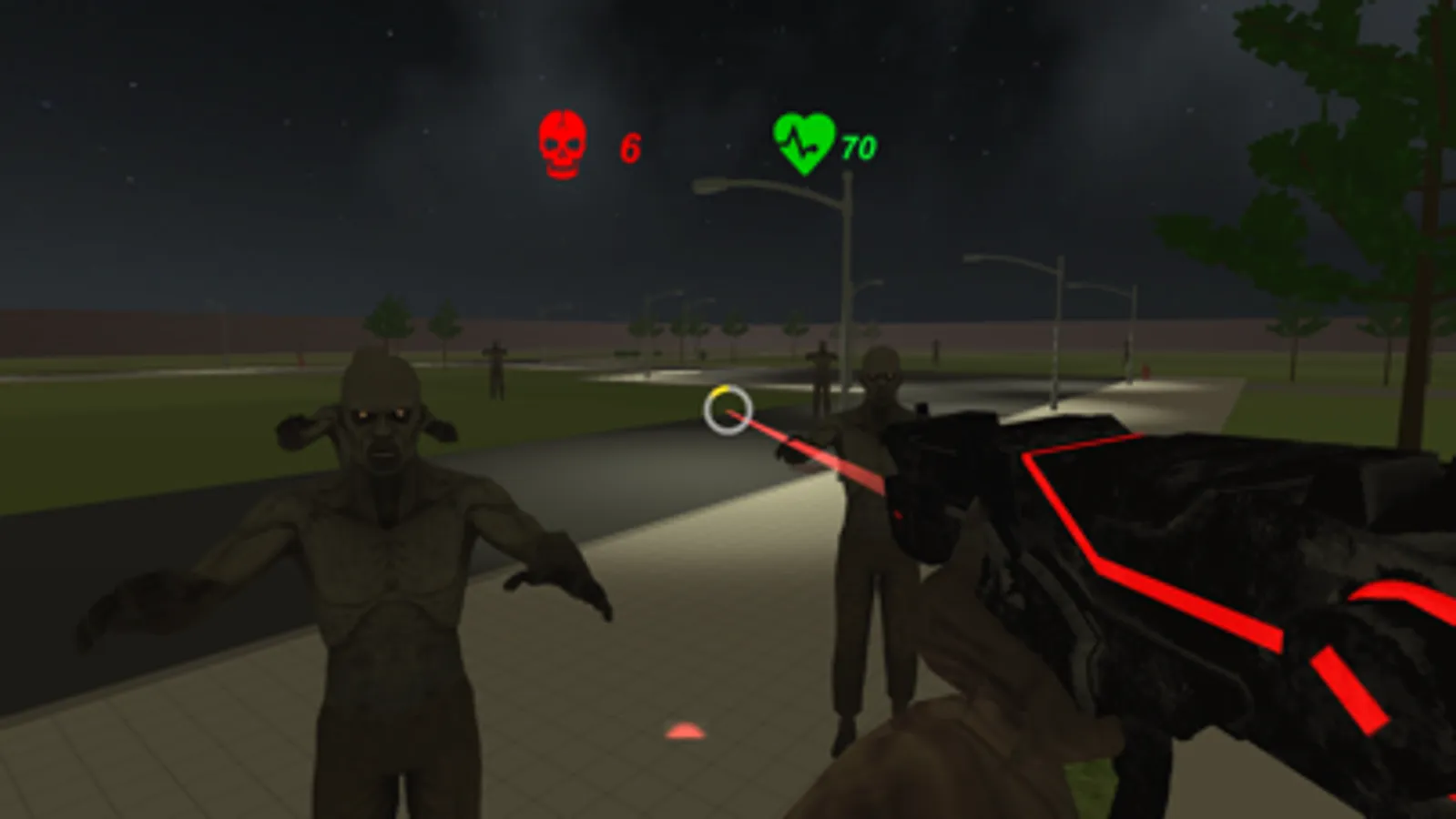 Get ready to defend from zombies in virtual reality! Experience the real sensation and thrill of the undead with your mobile virtual reality headset. Look in the direction you want to shoot your gun and don't get bitten by zombies!