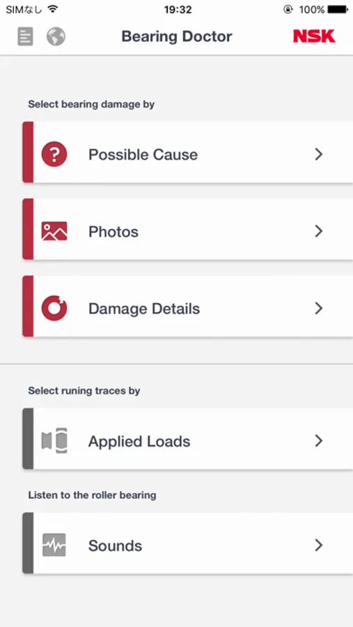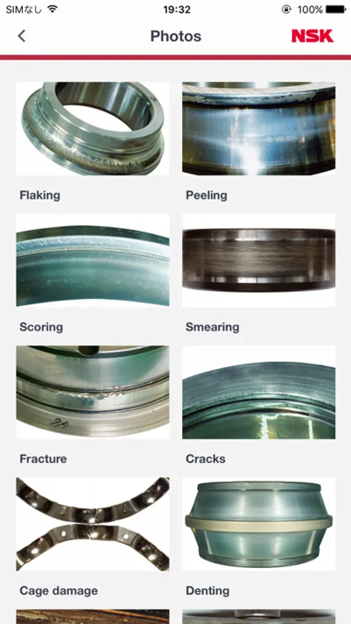 The app also includes many images and sound clips to help users diagnose types of bearing damage and possible causes. Detailed explanations help users learn the key characteristics of different types of bearing damage.