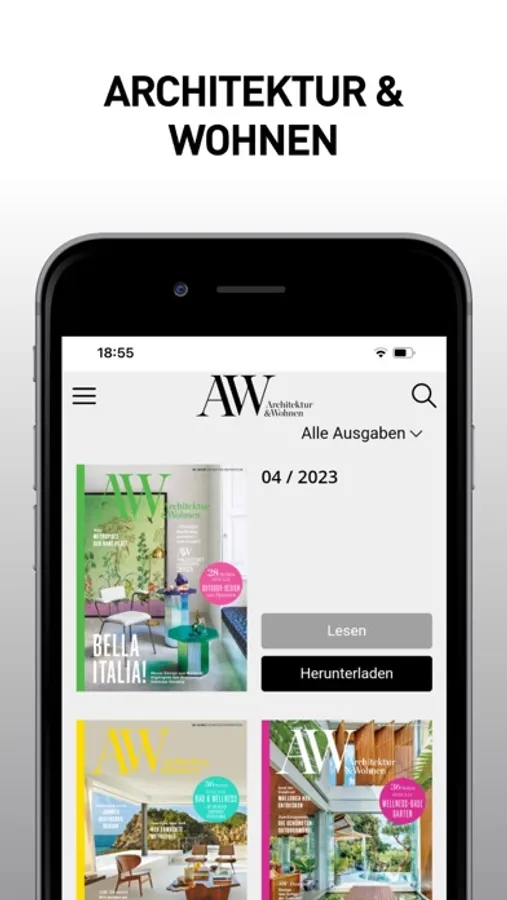 Dabei ist A&W souverän und sympathisch, meinungsstark und anspruchsvoll, innovativ und international. Seine Marktführerschaft unter den hochwertigsten Wohn- und Architekturmagazinen bestätigt A&W mit jeder Ausgabe – durch exklusive, von namhaften Fotografen und Autoren weltweit eigens für A&W produzierte Reportagen, durch eine immer wieder überraschende Herangehensweise an Themen und eine vielfach preisgekrönte Bild- und Layout-Sprache.