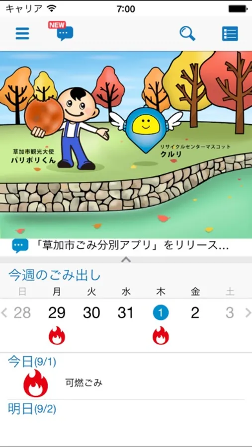 草加市ではごみの収集日やごみの出し方、出す時の注意点、ごみ分別辞典、よくある質問など、ごみに関する様々な情報を身近なスマートフォンを利用して簡単に確認できるアプリケーションをリリースしました。