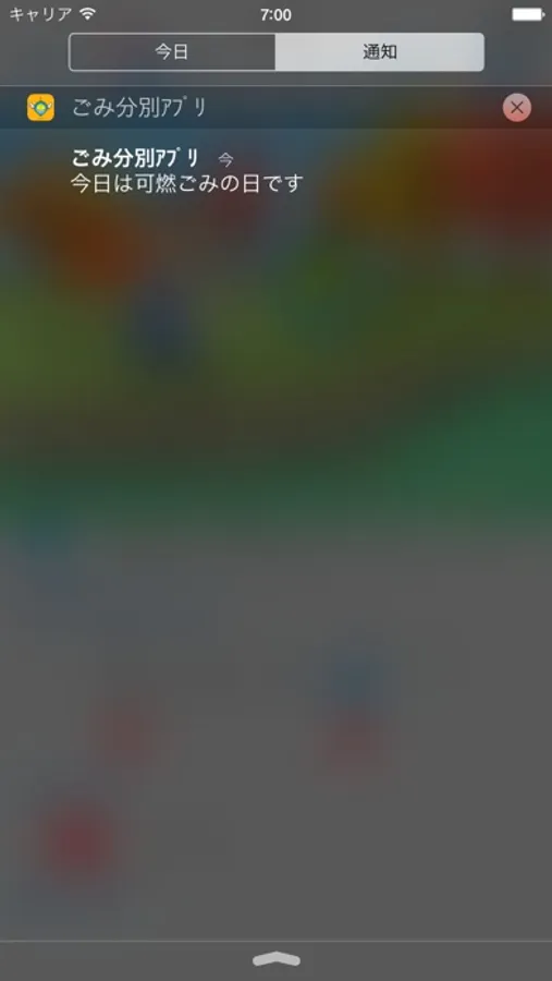 収集予定のごみ種別を前日と当日にアラートでお知らせします。時間は自由に設定することができます。