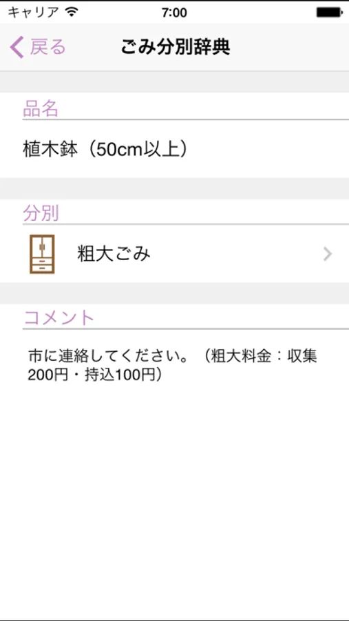 品目毎にごみの捨て方を確認できます。また、検索性の高い仕組みをつかっているため探しているモノを簡単に見つけることができます。