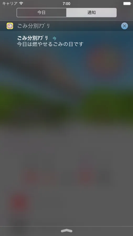 収集予定のごみ種別を前日と当日にアラートでお知らせします。時間は自由に設定することができます。