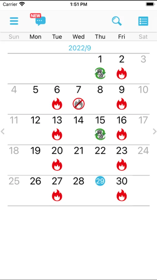 You can check three patterns of the garbage collection schedule on one screen at a glance: “Today and Tomorrow,” “Weekly,” and “Monthly.”