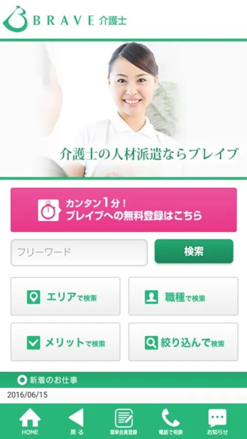 ブレイブの介護士・看護助手の人材派遣・転職の求人検索アプリになります。