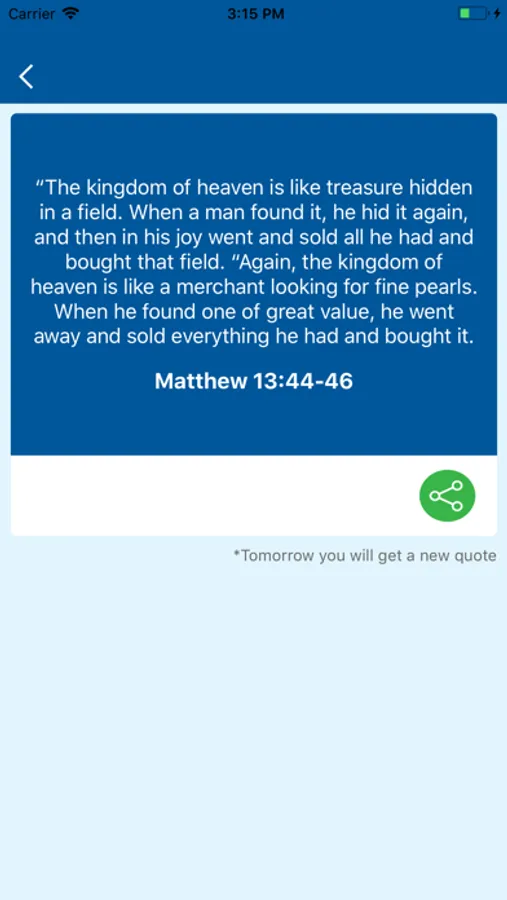 Holy Daily Bible Verses will give one Bible Verses daily in the morning. Next morning you will get another Bible verses specially chosen for you. Our idea is to motivate you though one Holy Bible Verses daily in the morning, which can help you to achieve more in your life and in your daily activities.