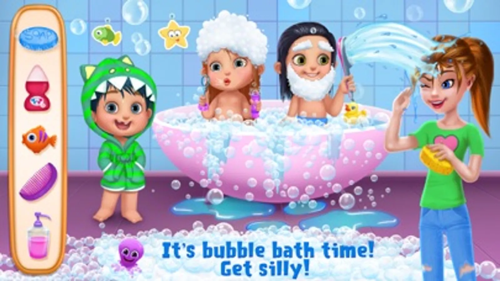 > Give the kids a bubble bath and feed them supper! Oh no - a food fight! Break it up!