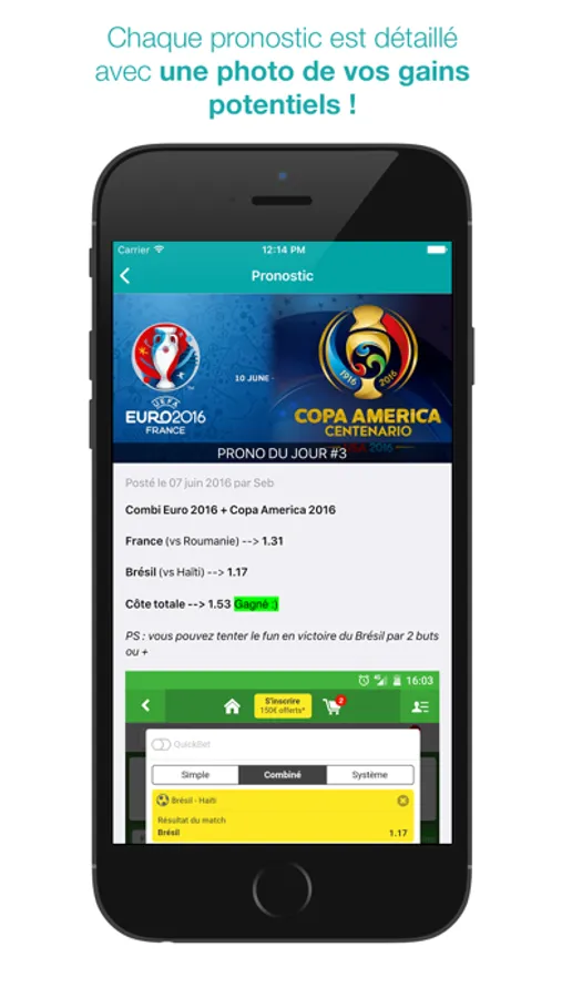 L’application Prono chance a été conçue pour vous apporter les meilleures côtes disponibles. Vous y retrouverez quotidiennement des pronostics étudiés pour vous apporter le paris le plus sûr possible. Egalement, des paris fun vous seront proposés avec des côtes plus hautes mais plus risquées.