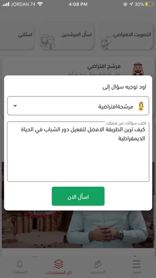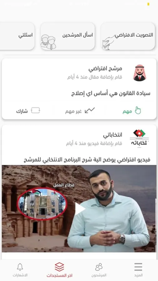 عن طريق انتخاباتي تستطيعون التواصل بشكل مباشر مع مرشحيكم وطرح اسئلة عليهم لمعرفة ارائهم ووجهات نظرهم.