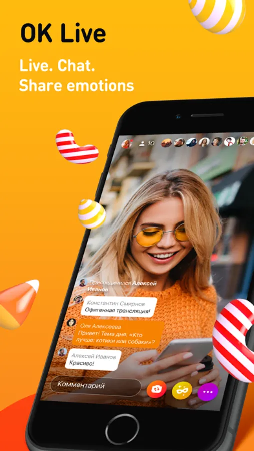OK Live – Watch livestream videos and follow everything that is going on around you! Share lifetime moments in real time with friends and the whole world with the camera on your mobile phone, without ads and for free. A weak signal is not an issue for streaming anymore! The app works on 4G/3G/2G/EDGE or WiFi networks.