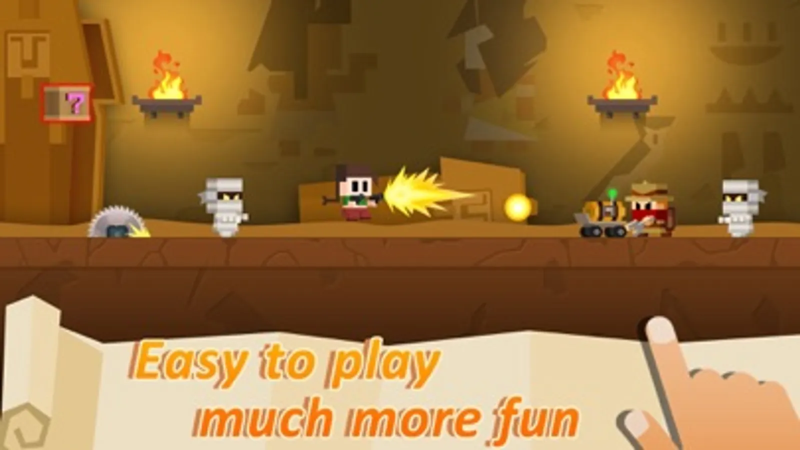 Tomb Hero is a very interesting action game, you will use a unique way to escape and destroy the monster in the tomb.Jump back, and shot, you are super fast reaction hero, treasure all over the world in the tomb, victorious.Each tomb has its own unique little monster!Play your super power, let your heroes explore more tombs!