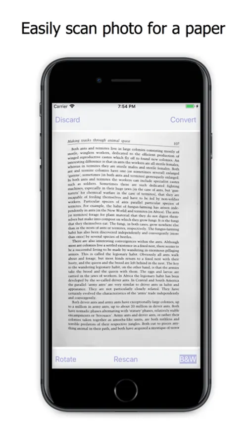 Files are sent to our powerful servers where they are being converted by best-on-market OCR technology, so your phone battery and resources won't be drained by conversion. After the file is converted, the result is being downloaded back to the app, and the files are deleted from our servers immediately.