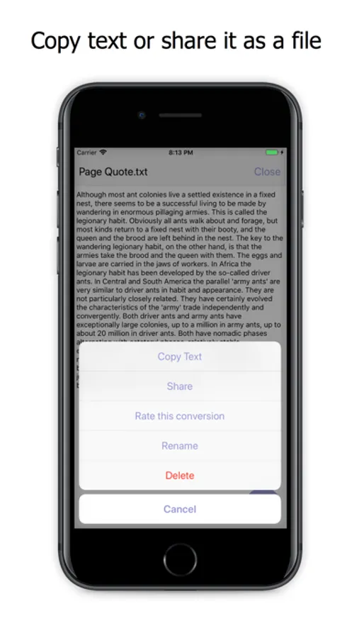 • Converted documents are editable so, if it is needed, you can quickly make small adjustments in any text editor on your phone or computer.