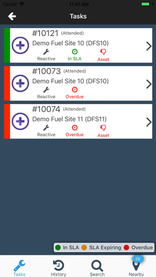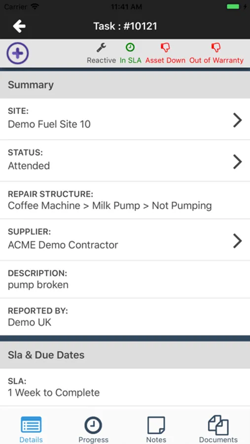 • Access to comprehensive information relating to sites, tasks and assets. Service engineers can check store opening hours or locations, verify asset detail such as model, manufacturer and install date, access task detail, tasks progress and any associated notes or documents such as warranties and manuals.
