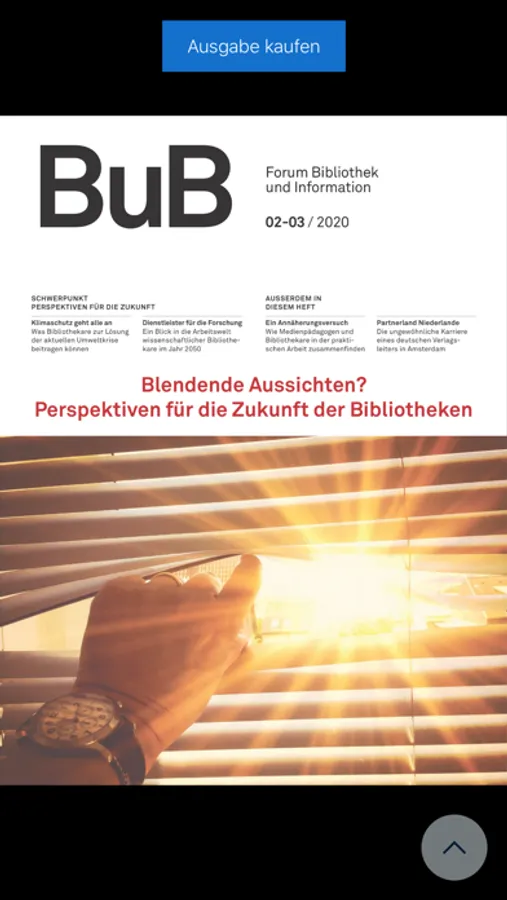engl.: »BuB – Forum Bibliothek und Information« is the most widely distributed and broadest professional journal for the library and information sector in the German language. It encompasses essays, commentaries, discussion forums, interviews, field reports and news about public, academic and special librarianship as well as the related areas of educational and cultural politics.