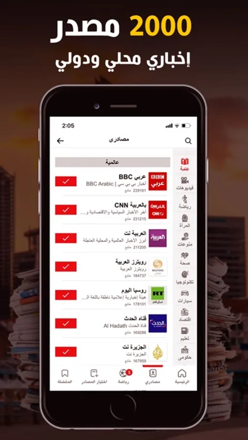 استمتع بـ 2000 مصدر إخباري متنوع، سبق صحفي لكل جديد واختر منها ما تفضله، لمتابعته خلال اليوم.