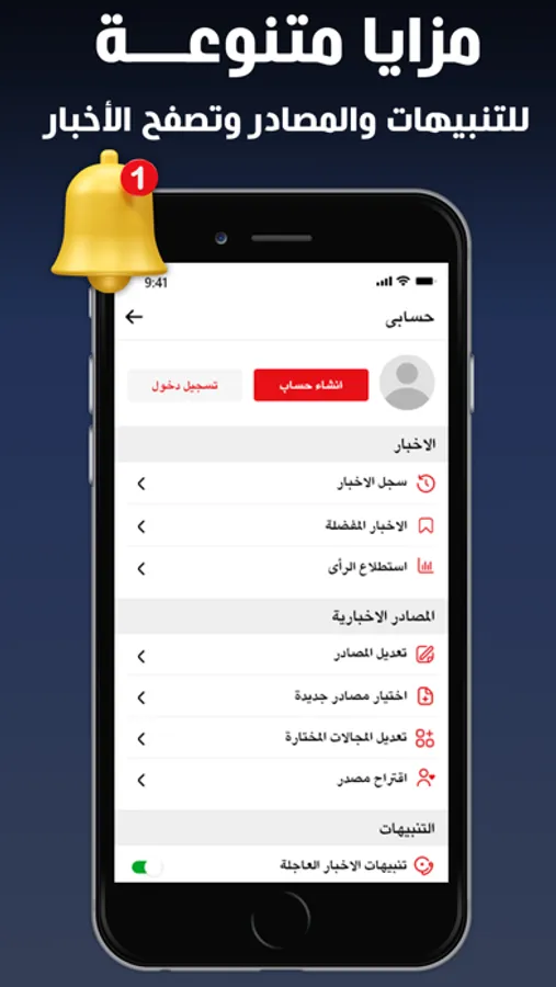 إرسال إشعارات من مصادرك المختارة على مدار الساعة، لعرض الاخبار العاجلة التي تهمك