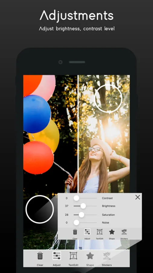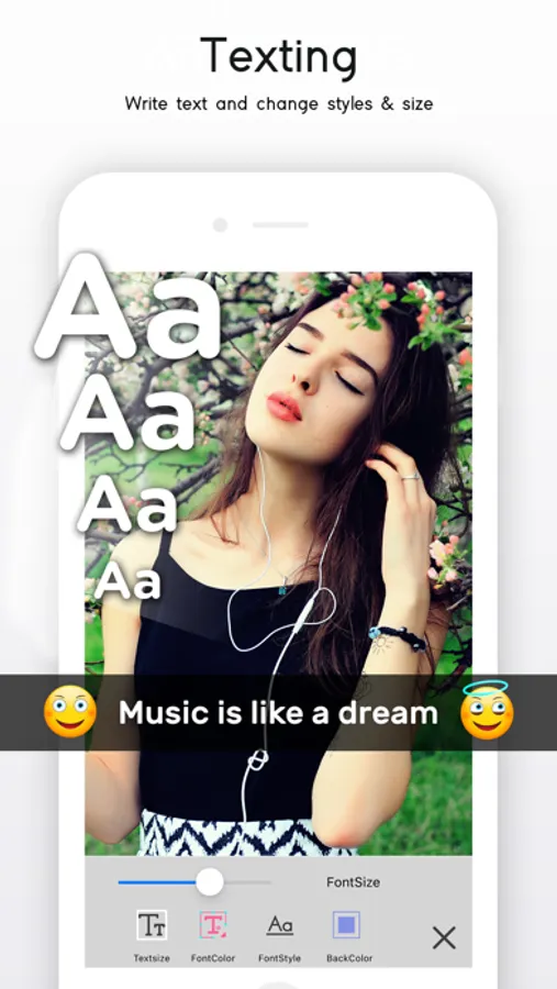 Write message on multiple photos and make your memories everlasting. Various options like text style, text color, text Rotation, text size, transparency & text shadow are also available.
