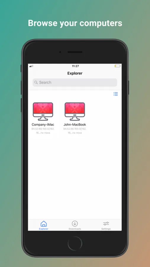 Browse and view files and folders of all your computers where NOKL is installed on the iOS device.